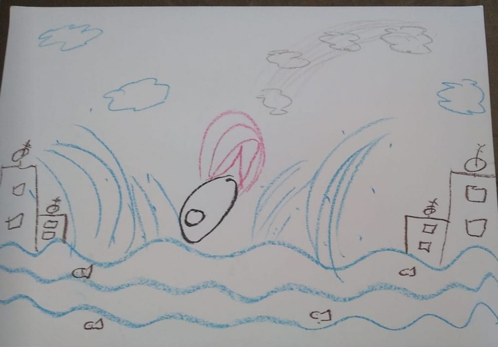 אחת התלמידות משכבת ד' ציירה דמות עם דמעות וסיפרה על אחותה החיילת שמשרתת בדרום הארץ ועל דאגתה וגעגועיה, תלמידה אחרת משכבת ה' ציירה את כיפת ברזל מיירטת טיל ותלמידה נוספת משכבת ג' ציירה טילים נופלים לים, בתקווה שכך אכן יקרה.