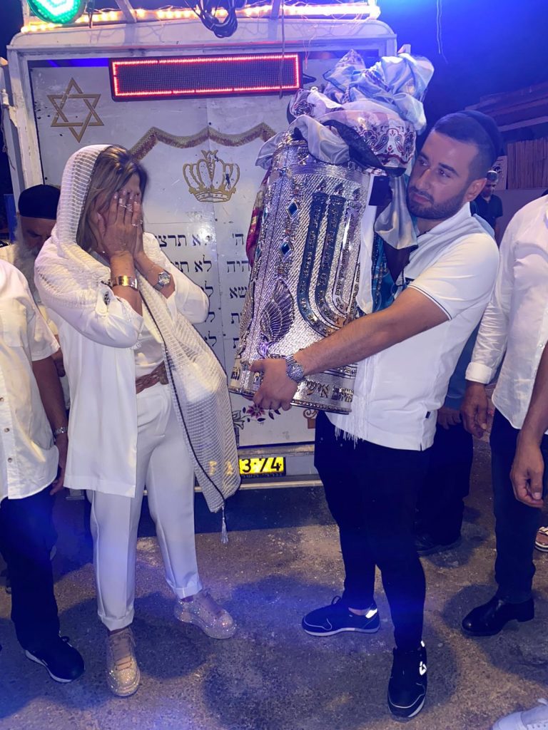 "ספר התורה נתרם לזכר אחי רונן אלקר ז"ל ואמור היה להיכנס לבית הכנסת באפריל שעבר, אולם בגלל הסגרים האירוע נדחה", מספר אחיו עו"ד רפי ג'רבי. "לצערי, בתקופה הזאת אחי משה ז"ל נדבק בקורונה ונפטר. אחותי החליטה שהספר יהיה לזכרם של שני אחיי וחיכינו לרגע שניתן יהיה לקיים אירוע ללא הגבלות".מאות משתתפים ובהם שרים, חברי כנסת, חברי מועצה, בני משפחה וחברים, צעדו בתהלוכה להכנסת ספר התורה שנתרם על ידי אחותם אילנה הילי ג'רבי.